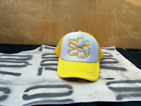 A 100% polyester front and 100% nylon mesh weave back One size with an adjustable plastic snap closure: 22.8" (58cm).