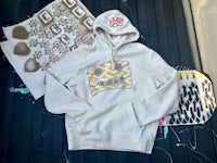 Creative process: Dewey Man & the Foundation logo Hoodies, every hoodie is an original as “Everyone’s heart is different”